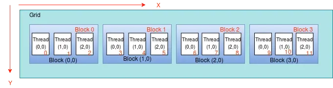 threadId=(blockIdx.x×blockDim.x)+threadIdx.x