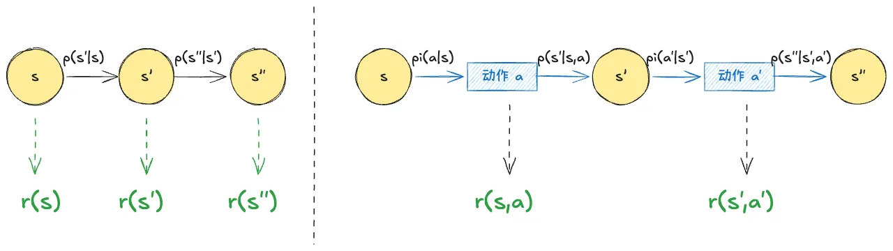 马尔可夫奖励过程是在马尔可夫过程的基础上,引入奖励函数,用于评估从某个状态出发的长期回报,从而衡量状态的优劣。